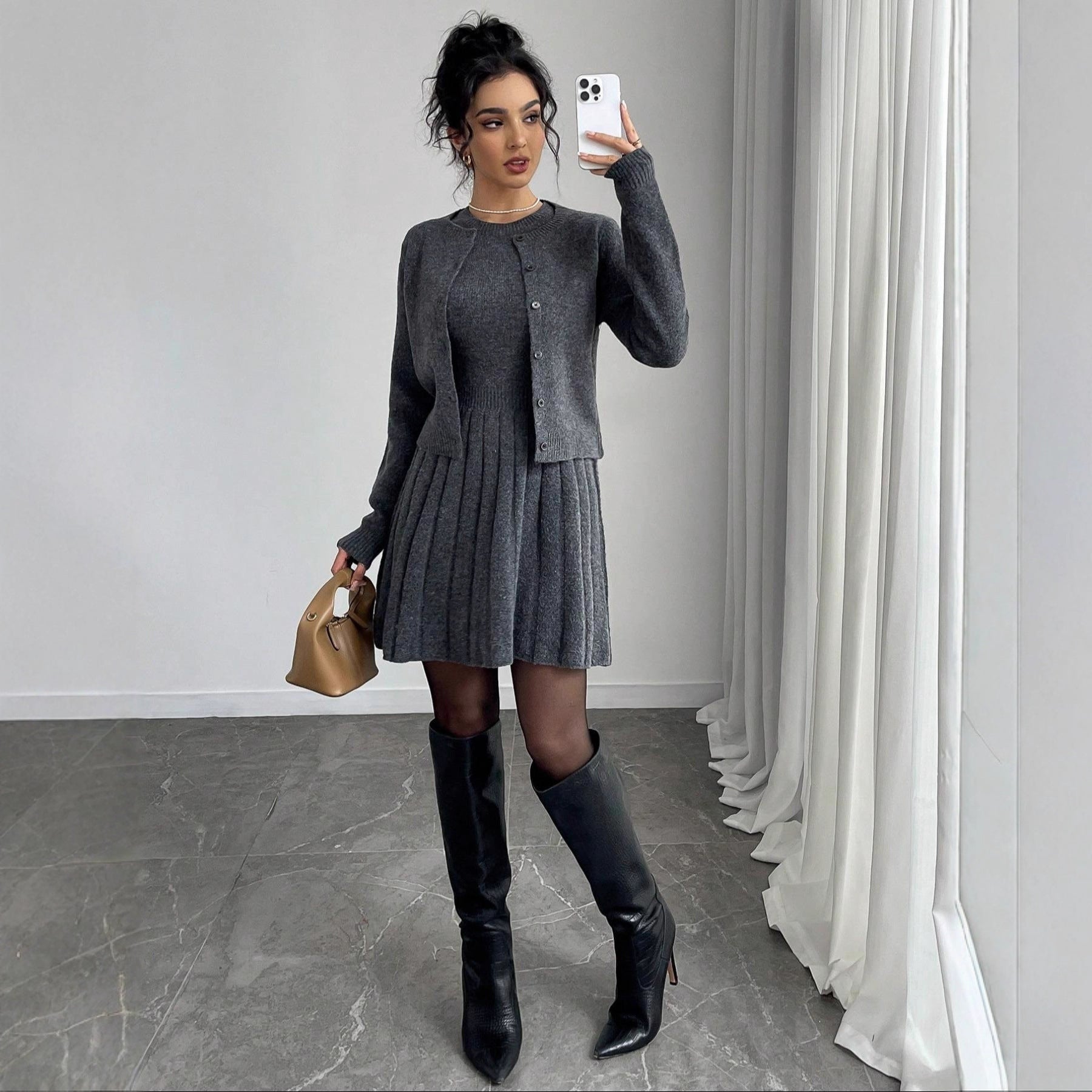 European And American Women's Clothing New Fashionable Knitted Dress Coat