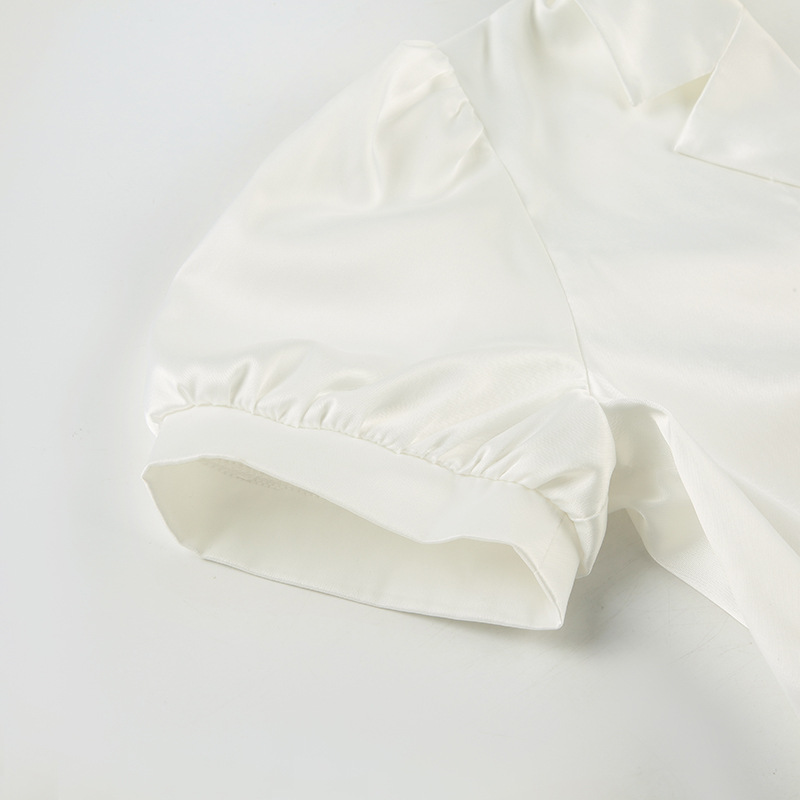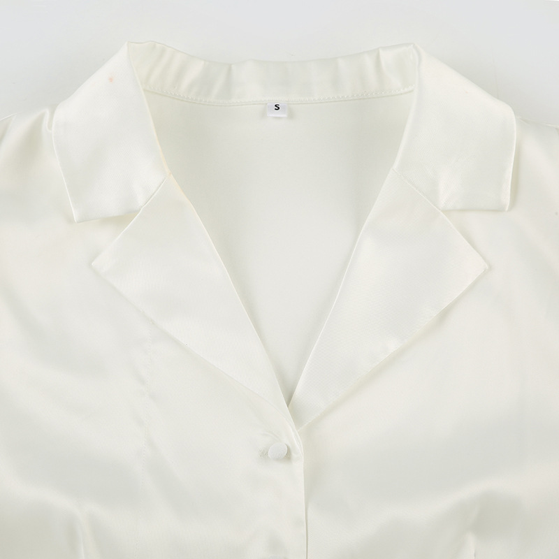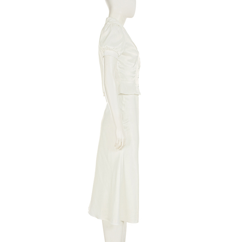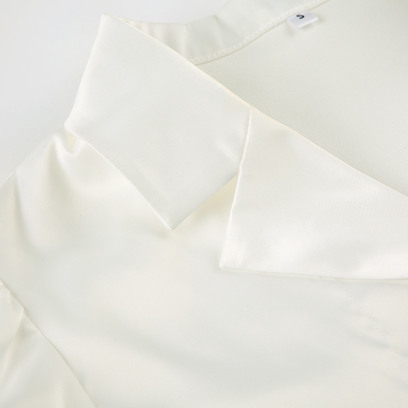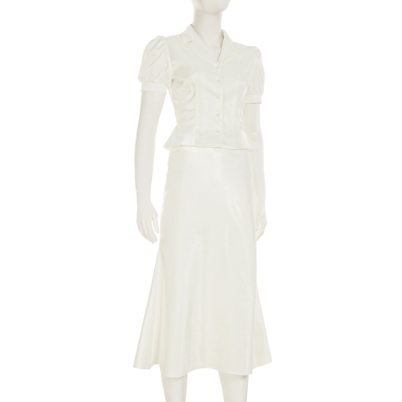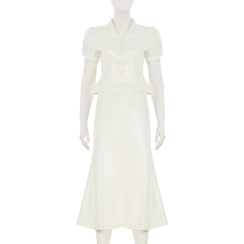 Temperament Pure Color Puff Sleeve Lapel Breasted Top A- Line Fishtail Dress Ladies' Fashion Suit